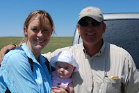 Scott and I celebrated our 2nd year wedding anniversary Tuesday by going up to one of the ranches we have grass cattle turned out on and had a picnic with our Bunkin. She got very excited to see the calves bucking and running. She is really getting very sensitive to all sorts of touch. She loves being tickled. She laughs, the cutest giggle you have ever heard! I run my fingers lightly down her arms and up the back of her neck, over the top of her head and lightly down her face, she gets goose bumps everywhere, closes her eyes and smiles. She loves her fingers sucked, she just giggles and giggles. She has started babbling with more distinct sounds...some sound a lot like da da....we are really pushing the ma ma but no luck so far. La and what sounds like hi come out along with her little mumbles. She twists and turns her wrists a lot and investigates her fingers. So curious about everything.