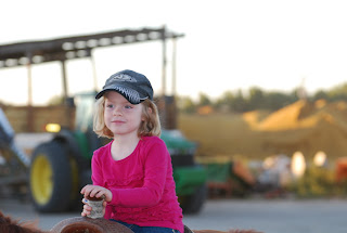 This week was really busy...another huge blog ;). Uncle Scott, Aunt Diana, Lilia and Grant were visiting, Tana turned 10 months, and we gathered and shipped our second set of cows and calves. Lilia and Grant both had their first horse rides. Lilia did great. Her Uncle Scott :) helped show her where to stand and how to walk up to them so they could see her, and she did a great job. Grant waved to all the cows and said "hi cuss...hi cuss". Laney and Lilia were really cute riding together, just chatting up a storm about birthday parties, I think. The third Uncle Scott, Uncle Volk, came with us to gather and ship this set of pairs. He roasted marshmallows with Laney and she ate her first s'more...took her awhile to fall asleep that night. It was a full, and fun week. The feedlot is filling up with calves. The weather is cooling off. We are chopping corn earlage this week. Gathering and shipping more pairs. It's definitely fall. Tana is everywhere. She loves to get under things and push things around. She gets under Laney's little pink table and pushes it all over the kitchen, and she does the same thing to her high-chair. She is starting to want to pull herself up on things. She gets on one knee and straightens the other out and will do partial stand up moves before she sits back down. She now has 4 teeth, her top front 2 and bottom front 2...and working on another. She LOVES signing...her favorite sign is book. She will just start signing book wherever, while I'm changing her diaper, while she's waiting for me to fix her food, while she's in the ergo baby carrier, and when you say "book" to her, she just smiles and starts playing peek-a-boo, which I think is her favorite game. She dances all the time. Whenever she hears any kind of beat or music, she just starts to bounce and dance. She is so cute. Her and Laney are quite the pair...so cute together. One kinda funny thing is when Tana has something in her hands that she's playing with or investigating, and Laney decides to take it from her (which she is getting better at not doing - not willingly) Tana makes he hands into fists and growls this short couple of frustrated sounding growls...it's really funny.
