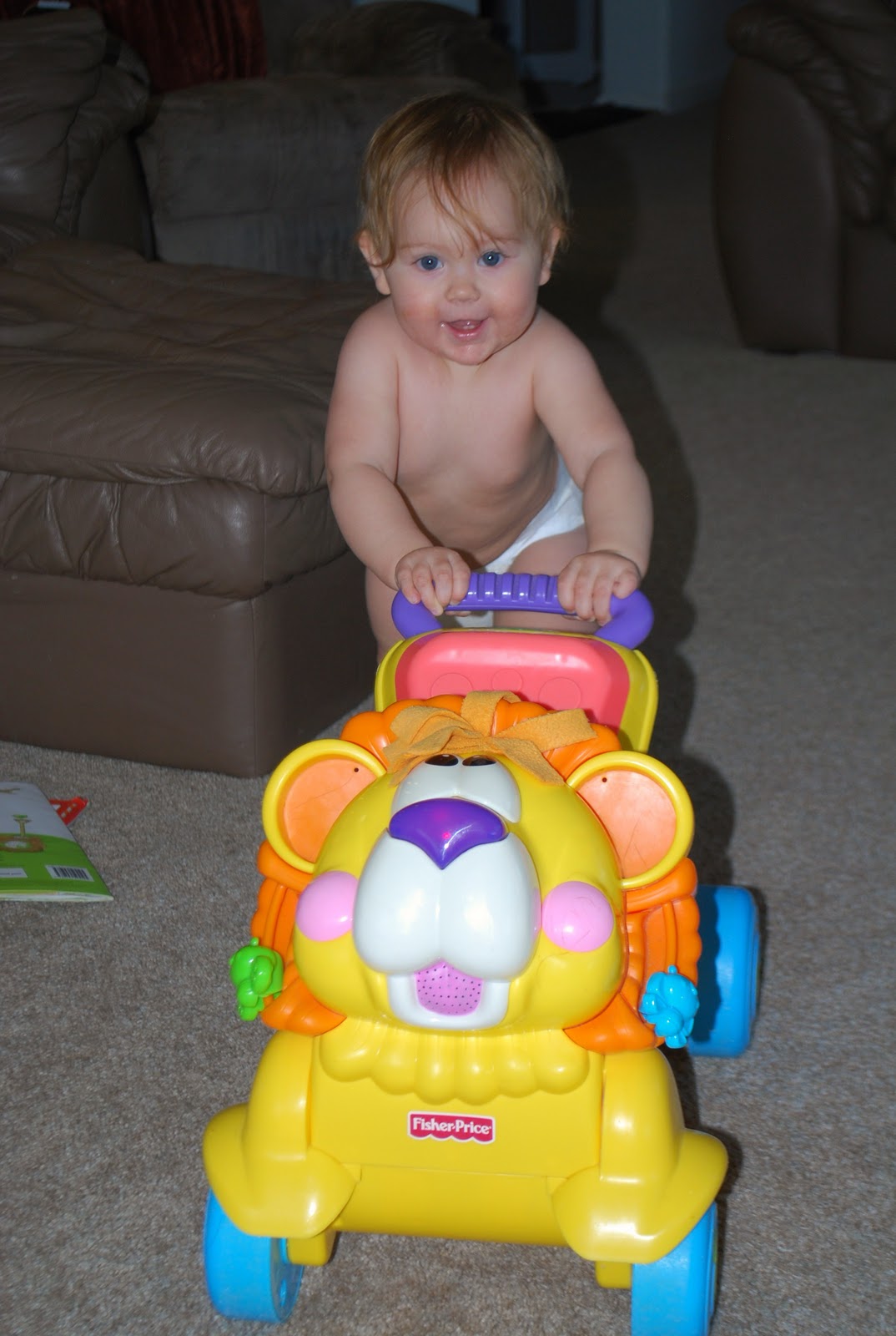 Happy Thanksgiving! Grama Sheri and Uncle Volk came for the Thanksgiving/Birthday weekend. Pics of both next week. Last Thursday night, Tana took 5 steps all by herself. She has since taken up to 15 steps independently. She's also crawling up the stairs, and crawling up onto the little pink chairs and up onto the little bathroom stool. She loves hugging all the pets. She does this little squeaky noise whenever she sees one of the kitties or dogs or horses because she wants to pet them and hug them. She has said 'cat', 'hi', 'apples', and 'boots' all clear as a bell, once, but not again. The common stuff is 'mom', 'mama', 'dadada', 'zzzstickaa', and 'yum'. Laney found another friend...Sadie was barking at something on the porch, and this poor skinny cat was hiding under there. I fed her because I felt sorry for her, she seemed nice, then she took off. But then she came back that night, and everyday after that. She passed the test...Laney hugged her, mugged her, rode Lucky with her...she's still around :) Laney named her 'Wilbur'. I think Wilbur could possibly be preggers...she is gaining a little weight all over, but her belly is getting pretty big :)We will see.